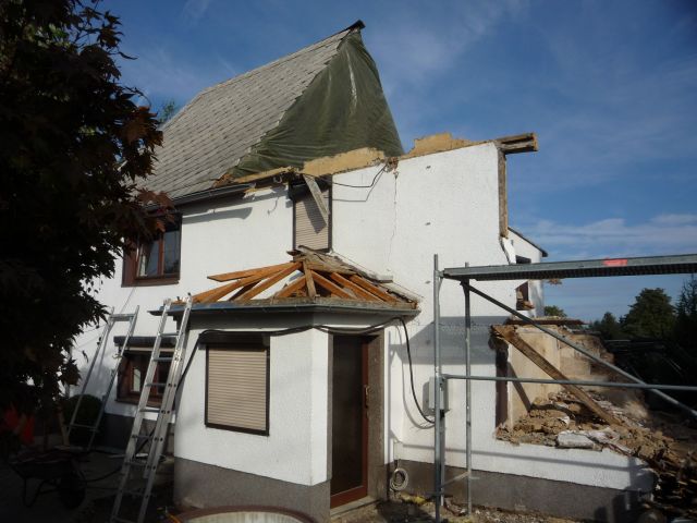 Dachstuhl abgebrannt und auch infolge des Löschwassereinsatzes ist unser Haus zu 75% zerstört.